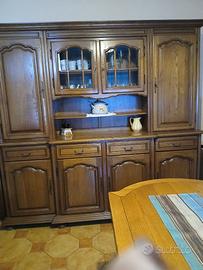 Vendo credenza in legno massello 4 ante nella parte bassa, 4 cassetti nella,parte alta due ante lunghe + vetrina .