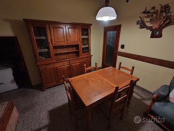 vendo coordinati: credenza, tavolo allungabile e quattro sedie in legno massello, stile fine rustico in ottime condizioni generali. Credenza 205x48xh210 tavolo 85x140/240