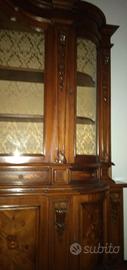 Vendo Credenza e tavolo in legno massiccio, intarsiati con disegni floreali più 6 sedie imbottite.