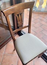 - tavolo L 179/240 X80H allungabile con piano intarsiato, gambe tornite sagomate e con sistema di allungamento estensibile a serrandina con sedie imbottite abbinate 95h € 2100