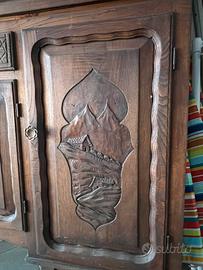 Vendo credenza in legno massello, stile rustico con ante scolpite a mano in ottime condizioni. Misure: 184x44 h185 Prezzo trattabile.