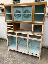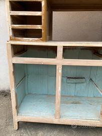 Credenza in fase di restauro, vendesi per mancanza di tempo da dedicate al progetto, completamente in legno massello sverniciata al 60% circa. Incollaggi vari dove necessario già effettuati.