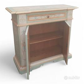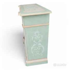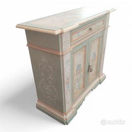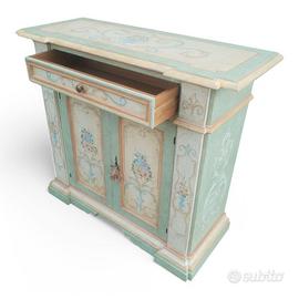 Questa elegante credenza provenzale in stile toscano è un'opera d'arte artigianale. Le ante dipinte a mano con motivi floreali delicati e linee sinuose creano un'atmosfera affascinante di charme rustico. Il cassetto superiore offre uno spazio aggiuntivo per riporre oggetti preziosi. Realizzata con legno di alta qualità, questa credenza è un pezzo da collezione che aggiungerà un tocco di raffinatezza alla tua casa. Le dimensioni sono perfette per un angolo o un corridoio. Un acquisto che affascinerà gli amanti dell'artigianato provenzale per anni a venire.