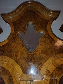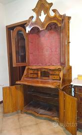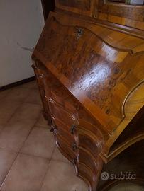 Elegante trumeau a ribalta in stile barocchetto veneziano, ideale per arredare con classe ambienti classici o dare un tocco di carattere anche a contesti moderni. Realizzato in legno con splendida impiallacciatura in radica di noce, presenta una raffinata lavorazione con linee mosse e sinuose tipiche dello stile Luigi XV. La parte superiore è dotata di ante sagomate, mentre la ribalta si apre rivelando un pratico interno con cassettini e vano scrittoio. Caratteristiche: Mobile a ribalta (secrétaire) con alzata Interno organizzato con piccoli cassetti Linee eleganti e bombate Ottima capienza Ferramenta in stile Il mobile è in buone condizioni generali, con normali segni del tempo che ne attestano il fascino e l’autenticità. Perfetto per soggiorno, studio o ingresso. 💰 Prezzo: 700 euro trattabili 📍 Ritiro a mano in provincia di Bologna (Bo) Disponibile per ulteriori foto o informazioni.
