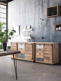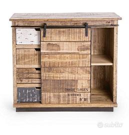 Credenza tudor 1 anta e 4 cassetti 90 x 35 h 85 cm STRUTTURA IN MANGO, BASE IN ACCIAIO. FINITURA A BASE DI NITROCELLULOSA.