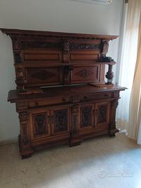 credenza antica con alzata in stile neorinascimentale, probabilmente risalente al XIX o all'inizio del XX secolo.