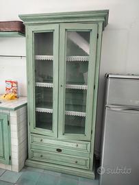 Vendesi credenza in legno colore verde (e eventualmente riverniciabile) in ottimo stato con vetrinetta e cassetti.