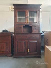 Corpo Inferiore (Credenza): La base include due cassetti superiori e due ante in legno massello più in basso, offrendo spazio contenitivo aggiuntivo.