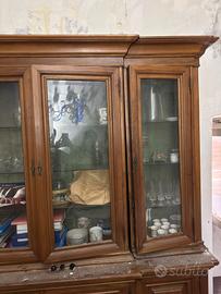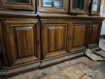 Vendo elegante mobile a doppio corpo (credenza e vetrina) in legno di noce di alta qualità, ideale per arredare con prestigio un salone, una sala da pranzo o uno studio professionale.