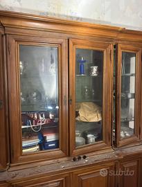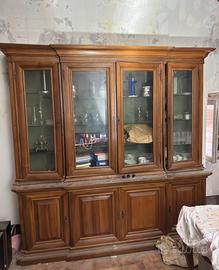Vendo elegante mobile a doppio corpo (credenza e vetrina) in legno di noce di alta qualità, ideale per arredare con prestigio un salone, una sala da pranzo o uno studio professionale.