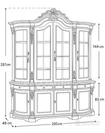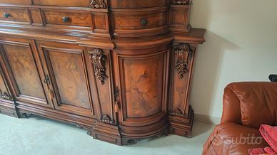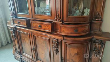 Vendo prestigiosa credenza vetrina in legno massello, lavorata artigianalmente con raffinate decorazioni in stile barocco. Il mobile si presenta in eccellenti condizioni e rappresenta una combinazione perfetta tra funzionalità e ricercatezza estetica.