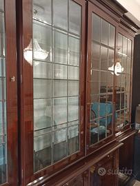 In stile inglese, legno piuma di mogano con struttura massello e ante impiallacciate in mogano.