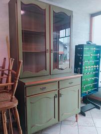 Mobile credenza vintage anni 70 con due ante, due cassetti e vetrinetta. Vendo con tavolo abbinato che nelle foto ha le sedie sopra ma se interessati posso mandare foto anche del tavolo. Modello old america Snaidero.