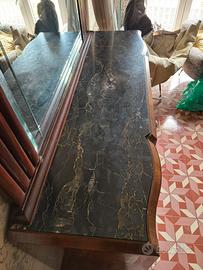 Vendo elegante credenza / vetrinetta con specchio vintage in stile Art Deco, misure 180x103x55 cm (LxAxP). - Linee arrotondate laterali - Colonne decorative verticali - Impiallacciatura con venature geometriche - Vetro centrale e specchio superiore - Copertura effetto marmo ❌ Non effettuo spedizioni 📍 Ritiro a carico dell’acquirente ⚠️ Il mobile si trova al 1° piano SENZA ascensore Per più informazioni o altre foto scrivimi pure.