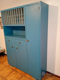 Vendo credenza vintage, fatta da falegname interamente a mano negli anni '30. Poi pitturata in blu(come da foto). Misure: Alta 190, larga 138 e profonda 40 cm.