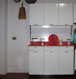 Credenza vintage anni’60 marca Salvarani. Mobile in formica di colore bianco con top arancione in ottime condizioni pari al nuovo. Ideale per arredamento vintage ma anche moderno per cucine o locali commerciali e ristorazione.