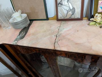 Vendo come da foto credenza in legno vintage con piano in marmo. Come si può vedere il marmo soprastante presenta una spaccatura. Ritiro in zona