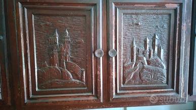vendo due credenze anni 60 in legno (castagno) con intagli a mano su ante e cassetti,vendo solo con Subito,o di persona.