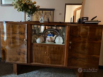 Credenza con vetrina e credenza buffet con specchio anni 50 in legno tamburato. Fabbricate da artigiano a Cagliari negli anni 50 Vendo per 50 € Ritiro a cura dell’acquirente presso comune di Terralba (OR)