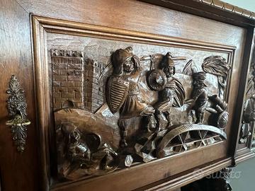 Abbiamo disponibili queste due credenze in legno massiccio con intagliate finemente scene militari
