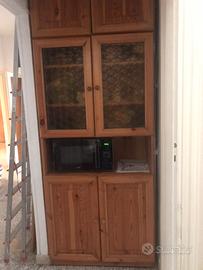 Vedesi mobili da cucina composto da una credenza con sportelli a vetro, monile alto 2 mensole, tavolo con 6 sedie. Zona garbatella.