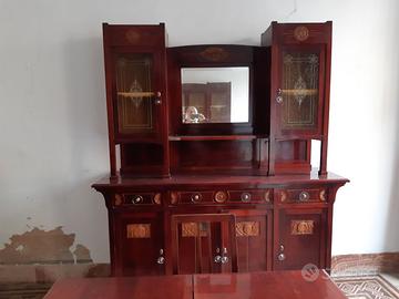 N. 2 credenze in legno di ciliegio, una con 4 ante in legno basse e 2 in alto e specchio centrale con vetro di dimensioni 185x52cm. ed altezza 215cm., l'altra con 4 ante in basso e 4 ante in alto con vetro di dimensioni195x52cm. ed altezza 215cm.. Vendibili anche separatamente. Prezzo €80 cadauna