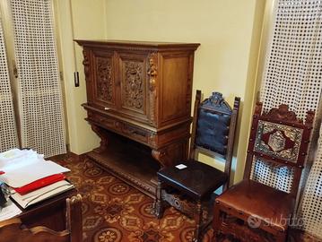Causa urgente sgombero di appartamento si vende set di 2 credenze in stile barocco e un mobiletto porta tv. Disponibili anche tavolo da 8 posti e relative sedie nello stesso stile. Per info e misure chiamare il 340/5330933 o il 334/9439925.