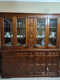 Vendesi arredo stile barocco spagnolo in legno di noce. (Misura credenza 265x50x95h) (Misura credenza con vetrina 265x50x~200h) Ritiro a carico dell'acquirente.