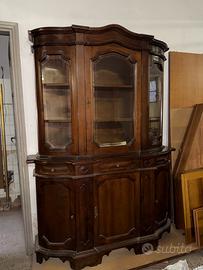 •Superiore con due ante a vetro curvo bombato, ripiani interni (visibili aperti).