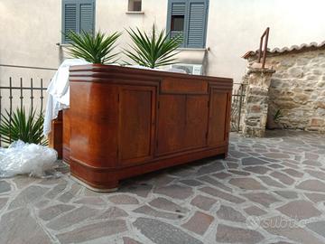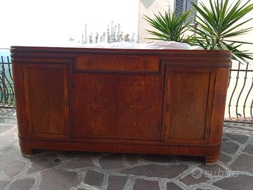 vendesi 2 credenzoni anni 50'/60' completamente restaurati color mogano con striature d'epoca. Struttura in legno molto resistente. Uno 170 x110 x60 con 4 cassettoni e 2 sportelli a chiusura con chiave, completo di specchiera come da foto. All'interno ci sono pianali. L'altro più grande 200x110x60 con un cassettone e 4 sportelli sempre con chiusura con chiave e pianali all'interno. Entrambi hanno i pomelli in dotazione originali color acciaio (non in foto perche' volevo pulirli). Prezzo poco trattabile.