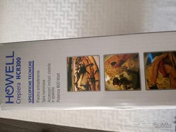 Vendo NUOVA in imballo originale, ancora sigillato, CREPIERA HCR 300 HOWELL. Piastra antiaderente, Termostato con spia luminosa, Potenza 800 Watt. Accessori inclusi: ciotola in plastica, spatola in legno Ritiro a mano o spedizione a carico dell'acquirente. Zona Napoli (Vomero/Arenella)