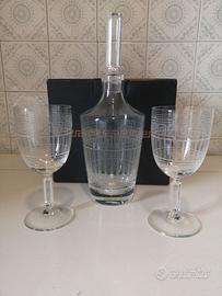 Due bicchieri Rosenthal Meandre Versace in cristallo nuovi mai usati, altezza 19 cm larghezza 9cm. Decanter con tappo in cristallo.