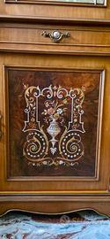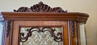 Vendo bellissima cristalliera in legno, un pezzo d’arredo di grande fascino che unisce l'eleganza dello stile classico alla praticità di un mobile spazioso e ben organizzato. È stata tenuta con cura ed è in buone condizioni generali, ma dati gli anni del mobile presenta un’imperfezione mostrata nella foto 3. La parte superiore è una vetrina luminosa con ante in vetro (anche sui lati curvi) e ripiani trasparenti, perfetta per esporre servizi di piatti, cristalli o collezioni preziose. Lo schienale interno è rivestito in un tessuto damascato dorato che esalta gli oggetti esposti. La base è un piccolo capolavoro, con pannelli in radica arricchiti da splendidi intarsi floreali fatti a mano e delicate decorazioni in metallo. Anche le maniglie e i pomelli sono lavorati e decorati con cura. Le linee morbide, il fastigio intagliato sulla sommità e il calore del legno la rendono ideale per dare personalità a un salotto o a una sala da pranzo. Caratteristiche tecniche: Struttura solida e robusta. Vetri integri e ripiani in vetro originali. Base dotata di cassetto centrale e ampi scomparti inferiori. Dimensioni: altezza 210cm x larghezza 120cm x profondità 42cm. Il mobile è visionabile senza impegno a Orbassano. Il ritiro è a carico dell'acquirente. Prezzo: 650€ (per chi davvero interessato il prezzo è leggermente trattabile) Contattatemi pure tramite la chat di Subito per qualsiasi informazione o per altre foto!