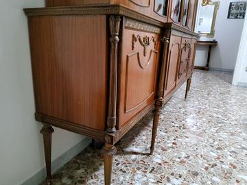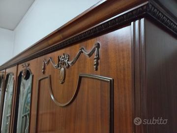 VENDESI CRISTALLIERA STILE 700' VENEZIANO A 5 ANTE SUPERIORI E 4 INFERIORI + CASSETTIERA TUTTA IN LEGNO INTARSIATO. MISURE 2,7 m X 1,9 m altezza X 0,5 m profondita. NAPOLI zona fuorigrotta.