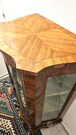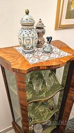 Vetrinetta per cristalleria in stile, anta centrale con vetro bombato.