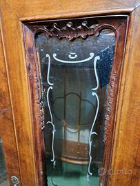vetrina cristalliera chippendale in noce 2 ante internamente ha 2 ripiani in vetro misura 145x45 altezza 148 prezzo comprensivo di restauro....M&P Antichità siamo un negozio specializzato in antiquariato vintage e shabby vendita al dettaglio e all ingrosso scarichi settimanali oltre 500 articoli in negozio, abbiamo una vasta scelta di como comodini tolette armadi letti vetrine vetrinette credenze servanti angoliere librerie tavoli tavolinetti sedie poltrone poltroncine divani lampade lampadari tappeti scrivanie scrittoi secretere ribaltine consolle quadri cornici specchi cassapanche bauli oggettistica varia idee regalo e molto altro ci troviamo a Roma zona Castelverde via Massa San giuliano 26b POSSIBILITÀ DI CONSEGNA E SPEDIZIONE IN TUTTA ITALIA
