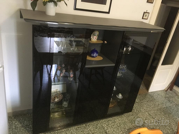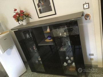 Vendo in ottime condizioni mobile basso nero/grigio laccato lucido mis. 240x48x75 con Cristalliera mis. 180x48x155