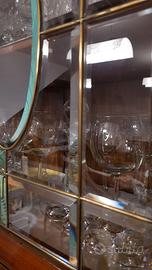 Credenza cristalliera di pregio in legno 100%, misure 150x52xH230 cm, 2 ante alzata con vetri giuntati al piombo come da tecnica antica, 2 ante inferiori chiuse, 2 cassetti con incastri a coda di rondine, maniglie e chiusure in metallo, le ante, i cassetti e gli angolari sono intarsiati. La vetrina sopra si stacca dalla base con ante e cassetti. Consegna a cura e a spese del destinatario.