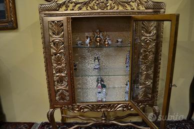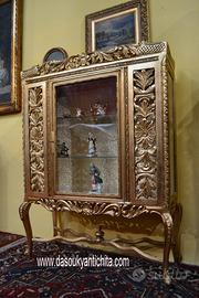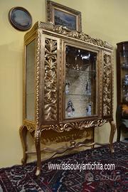 Vetrina-cristalliera stile Luigi XV Barocco con vetri sul fronte e sui lati, finemente intagliata a volute floreali ed a racemi che si rincorrono sui fianchi e sui profili di questa stupenda cristalliera.