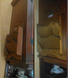 Elegante credenza pensile in legno con tre ante in vetro e ripiani interni. Dotata di ripiano inferiore a vista per tazzine o soprammobili. Stile classico e robusta struttura, perfetta per cucina o sala da pranzo. In ottime condizioni, senza nessuna ammaccatura evidente, pronta da appendere.