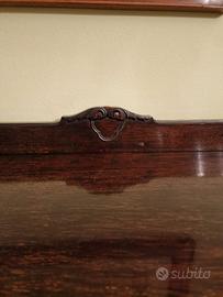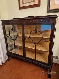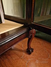 cristalliera inglese 800 in mogano, interni in stoffa gialla originale in ogni sua parte.