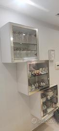 Vendo cristalliera moderna formata dal 3 cubi (ognuno misura 60*60*35) che possono essere predisposti a piacimento in modo da formare il disegno che più vi piace (a scala come in foto, sfalsati e così via). Come si vede dalla foto sono di colore bianco con porte color acciaio. Data la delicatezza del prodotto non effettuo spedizione. Ritiro in zona Lusciano, prezzo 450 euro
