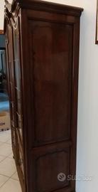 Cristalliera intarsiata in noce scuro stile barocco piemontese. Misure cm. 120x2020x49.