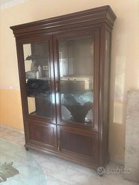 Vendo cristalliera / vetrina in legno in stile classico, marchiata La Bottega del Rigattiere (visibile targhetta originale).
