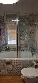 cristallo per vasca da bagno/doccia lato fisso 70x140 con lato semi mobile 50x140. Come nuovo, completo di braccetto