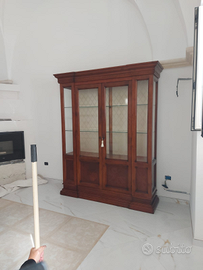 Vendo cristalliera in legno colore noce scuro lucido, con porte decorate sul legno nella parte inferiore . Dimensioni 2.15 alta , 40 profonda e 1.70 larga.