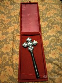 Croce in legno, artigianale, completa di cofanetto originale in velluto rosso. euro 7. Solo ritiro presso venditore Roma piazza Vittorio Emanuele II (StazioneTermini)