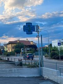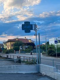 Croce bifacciale Parafarmacia da 90x90. Colore blu. Spessore 4 cm, dotata di staffe per ancoraggio a palo, scheda di rete wi fi per programmazione da pc. Animazioni programmabili da software dedicato. NON É POSSIBILE MODIFICARE IL COLORE.