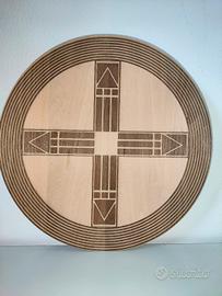 Croce cosmica radionica incisa su legno