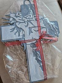 Crocifisso bianco e argento Misure Lunghezza 23cm Larghezza 16.5cm Con anello per appendere al muro